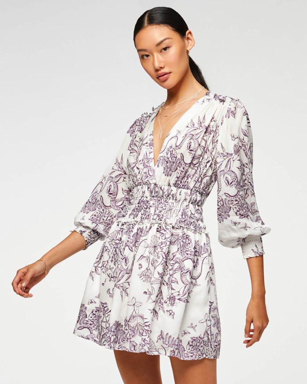 7 For All Mankind Long Sleeve Dress With Smocking in Purple Magic Garden ($298)