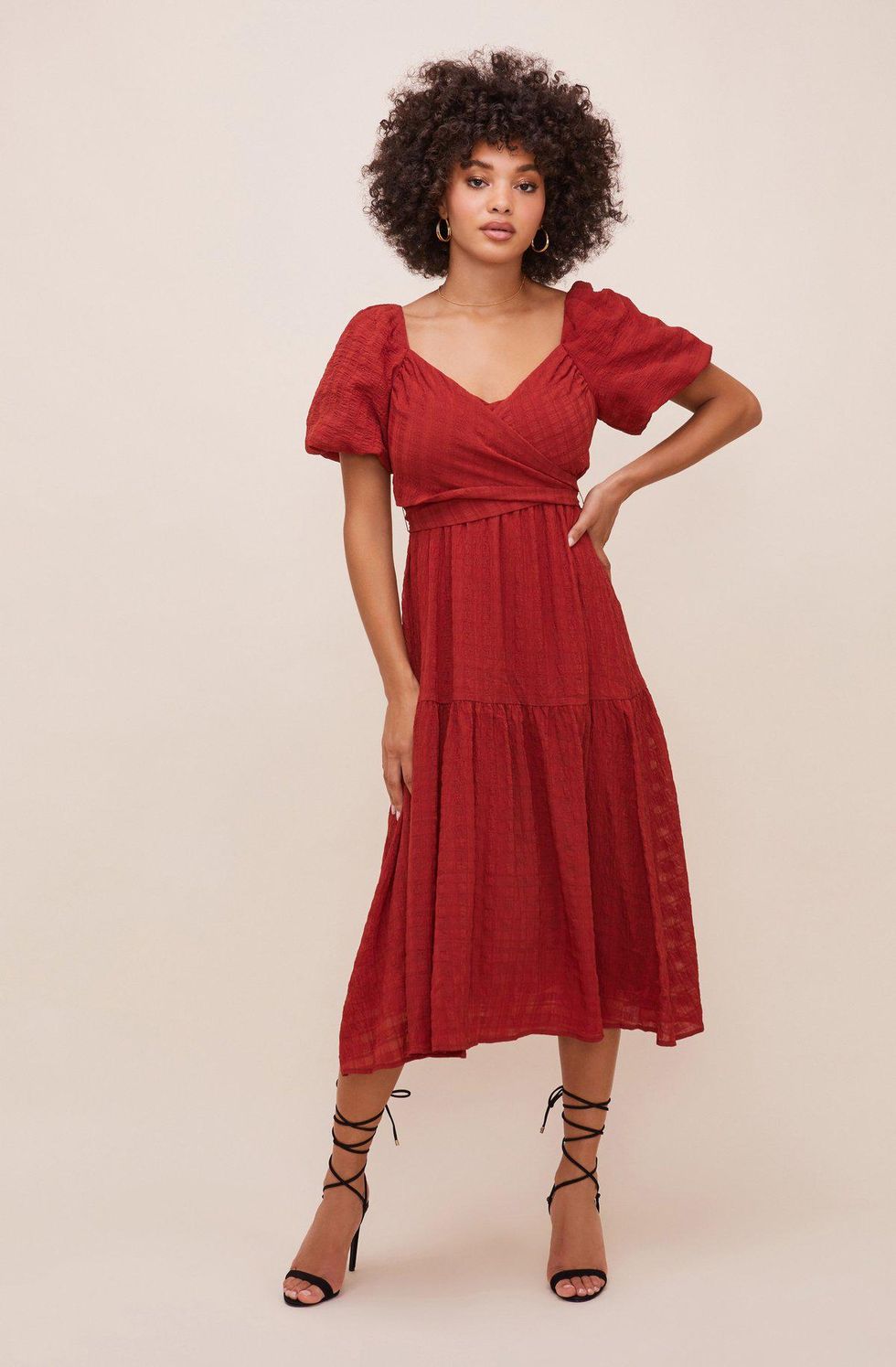 ASTR The Label Sonnet Puff Sleeve Midi Dress in Wine ($148)