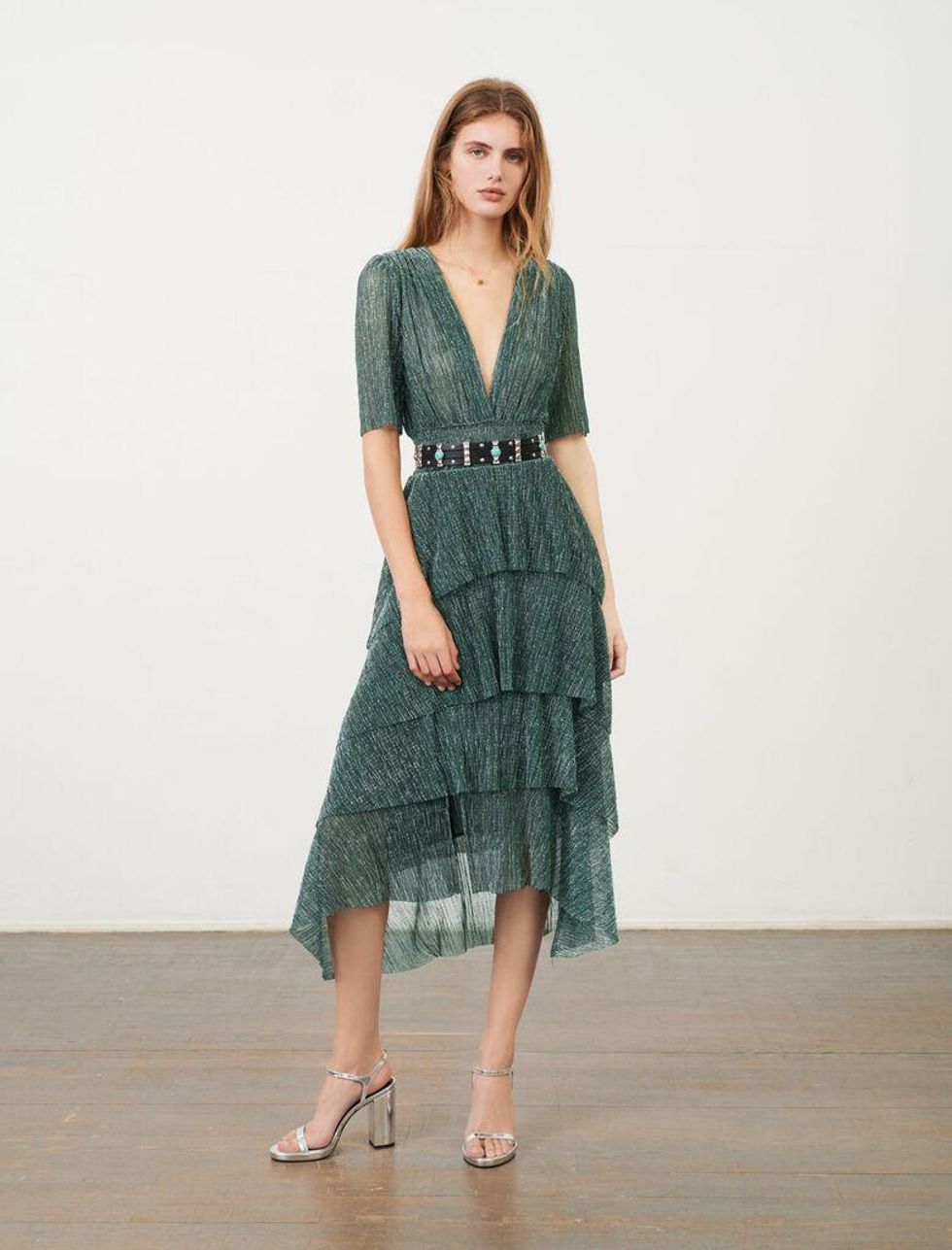 Maje Stretch Lurex Fabric Dress With Ruffles ($525)