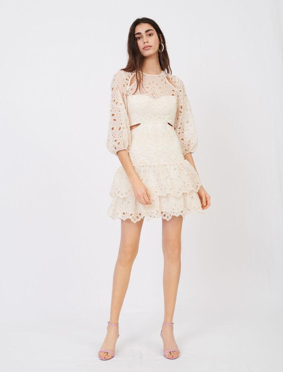 This lacey number has a playful A-line and flattering neckline for win-win style.