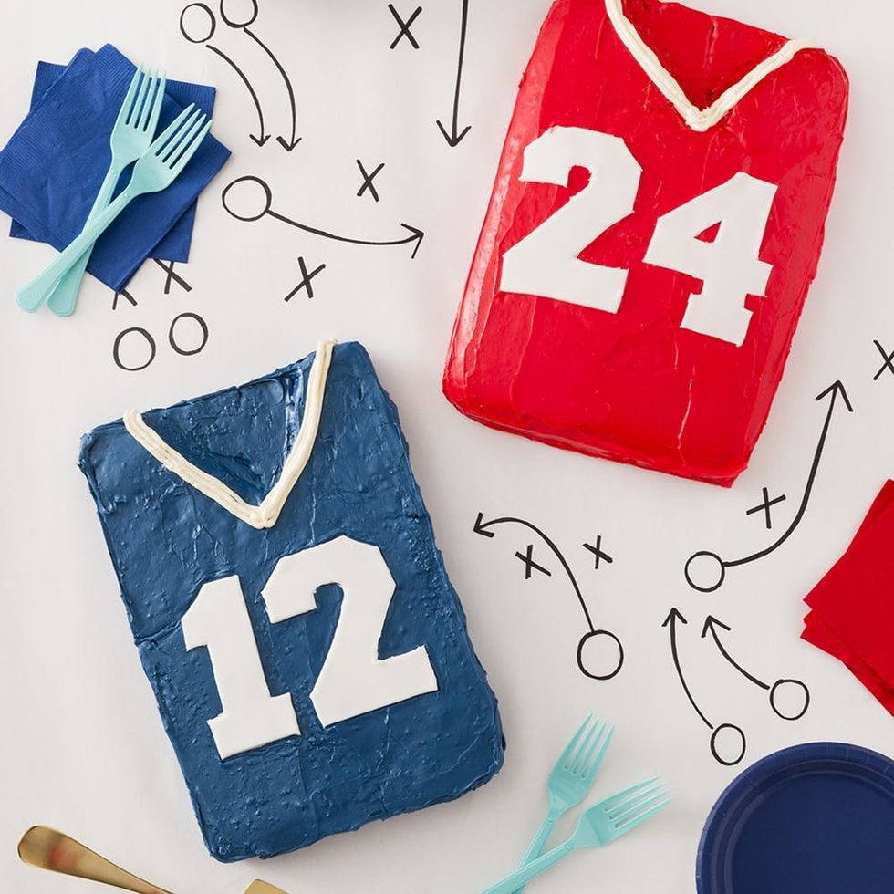 Score a Touchdown at Your Super Bowl Party With Football Jersey Cakes