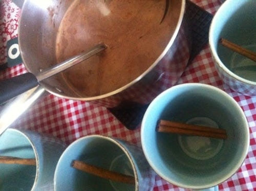 For our fixin’s, we served Reese’s peanut butter chips, white chocolate chips, broken up York Peppermint Patties, crushed Butterfinger, and marshmallows. We tossed the marshmallows in cinnamon and the tiniest bit of red chili pepper for a little kick. For drink stirrers, we used cinnamon sticks and our chocolate-dipped spoons, but candy canes would be perfect for making a drinkable Christmas dessert.