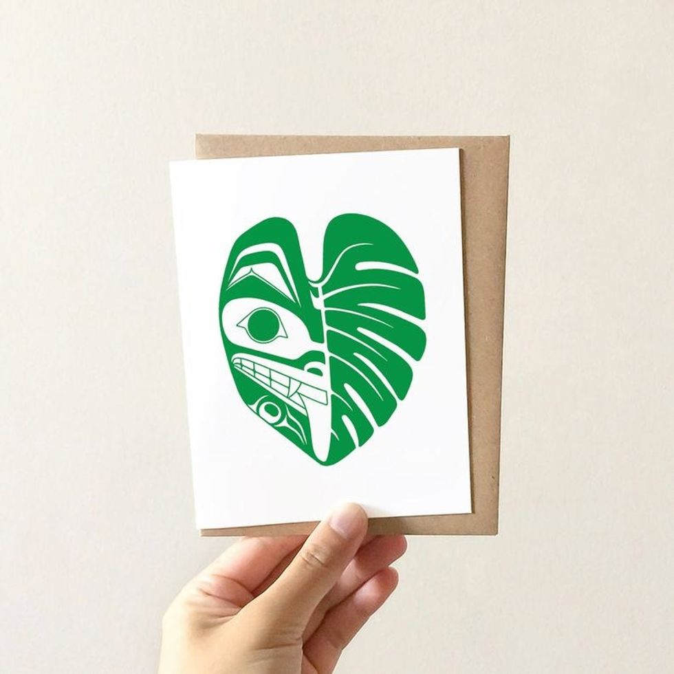 Northwest Coast Indigenous Monstera Wolf Greeting Card ($3.75+)