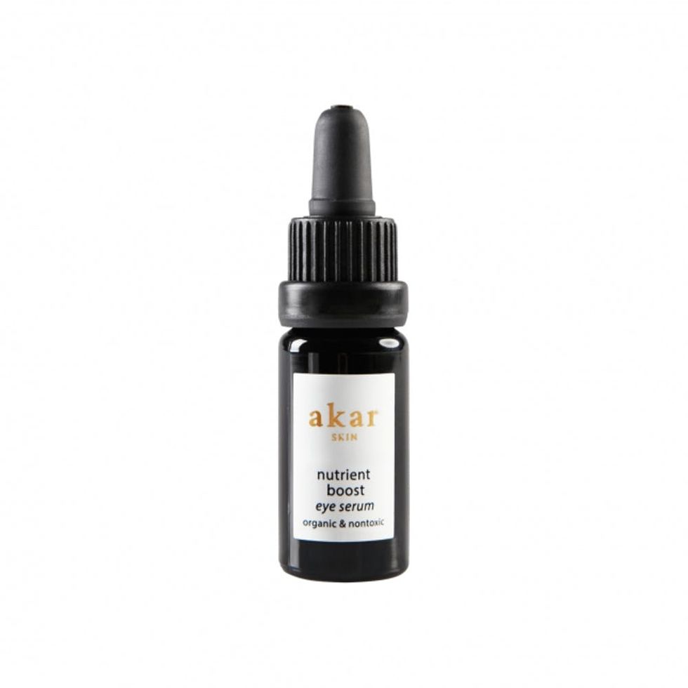 4. Eliminate skin-irritating ingredients. Artificial dyes, added fragrance, phthalates, parabens, propylene glycol, ethyl, and formaldehyde-releasing ingredients can all do as much harm to your skin as hours of unfiltered sun exposure. Not paying attention to your products’ ingredient lists can lead to redness, roughness, hyperpigmentation, and more. “Irritants activate enzymes in deeper layers of skin that break down collagen and elastic fibers, [causing] wrinkles,” Ciraldo explains. “When skin is exposed to irritants, the damage can be widespread.” To avoid these hidden skin saboteurs, read your ingredient labels closely for noted red-flag ingredients. Reach for 100 percent natural and organic solutions, especially around sensitive areas like the eyes, that don’t include thickeners, synthetics, or emulsifiers. Brit + Co Pick: Akar Skin Nutrient Boost Eye Serum ($85)