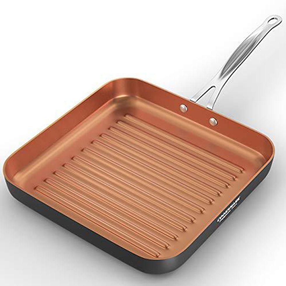 I love grilled food, but I don't like grilling in the winter. It's cold, there's usually snow, and I don't want to put on shoes. Every grill pan I've ever used to mimic the grilling experience has been a miserable failure, but I quite like this copper version. It makes great steaks and grilled veggies. It's nonstick and easy to clean which makes me even more likely to use it. I still prefer the real thing, but this comes close.