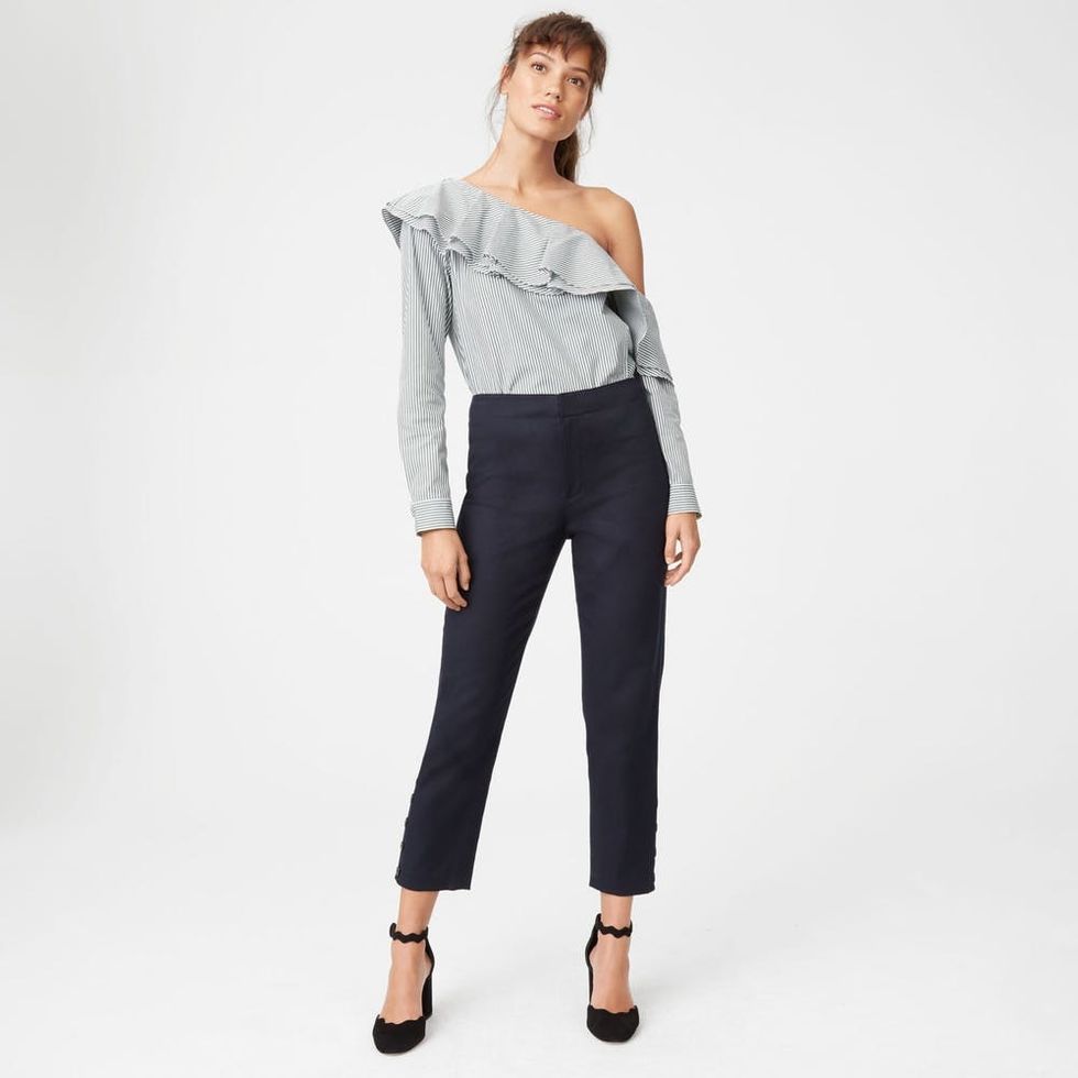 A One-Sleeve for an Off-the-Shoulder: Fall date nights, here we come. Sub in this romantic one-sleeve shirt (the way more polished sister version of your go-to OTS blouse) that's ready to mingle for a candlelit dinner or post-five o'clock dranks. Brit + Co Pick: Club Monaco Lesley Top ($130)