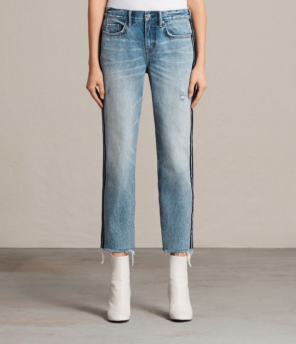 Frayed Boyfriend Jeans for Vintage Levi's Cutoffs: Vintage Levi's cutoffs of yesterday, you've been replaced ('til next summer anyway). Get your athluxury fix STAT with these striped boyfriend jeans that channel a more streetwear aesthetic. Pared-down logo tee and sock boots, where you at? Brit + Co Pick: ALLSAINTS Boys Stripe Jeans ($195)