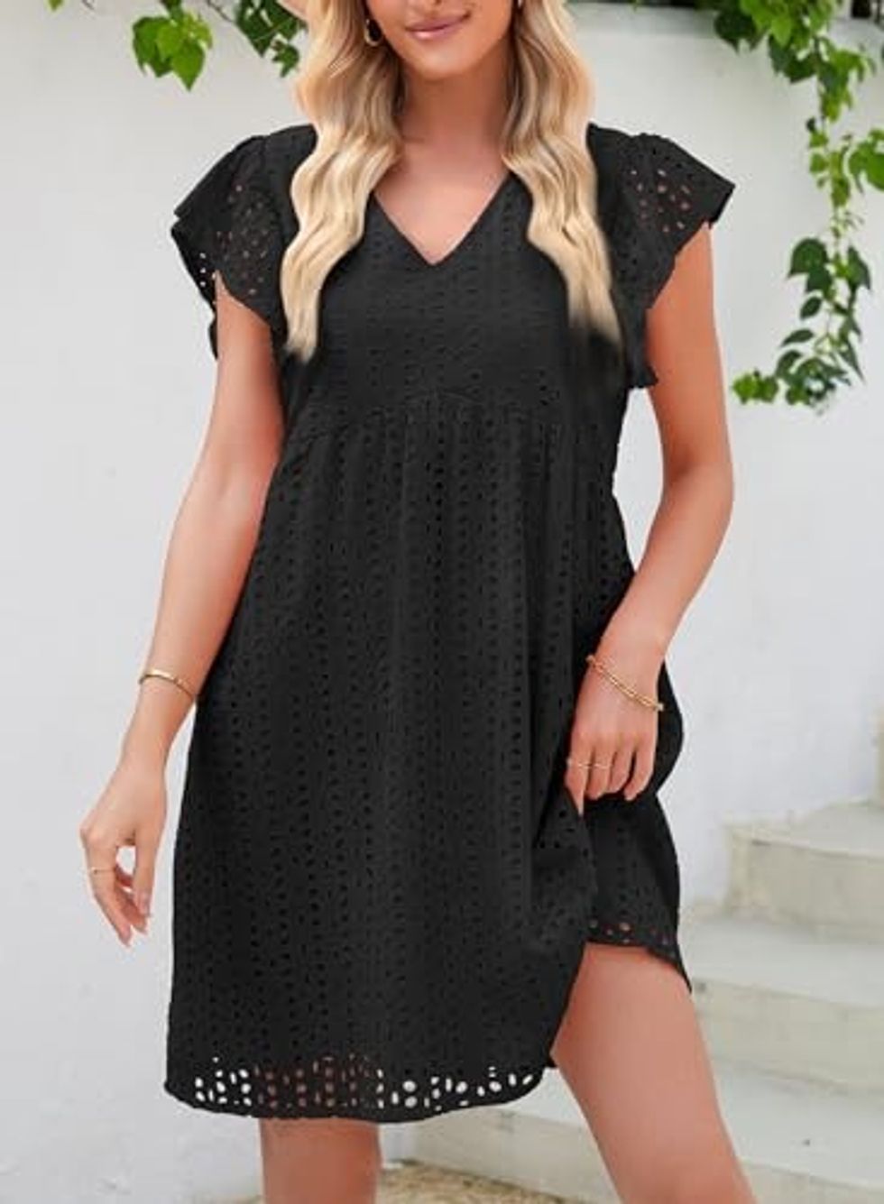 Meet your summer sweetie: the eyelet lace babydoll dress. With flutter sleeves and tiered cotton lace, it’s all sugar and sunshine. This one’s for days that smell like wild strawberries and sound like soft laughter under a big straw hat.