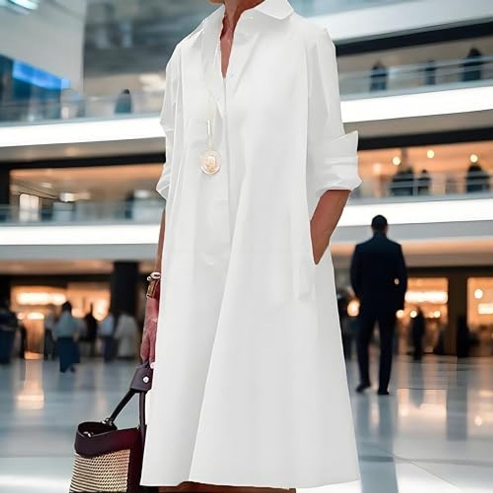 The button-down shirt midi dress is an everyday hero with hidden charm. Lightweight and soft with a relaxed V-neck fit, it’s breezy enough for hot days but structured enough to feel pulled together. Add a belt and sandals or go loose with sneakers; this one adapts to the mood.