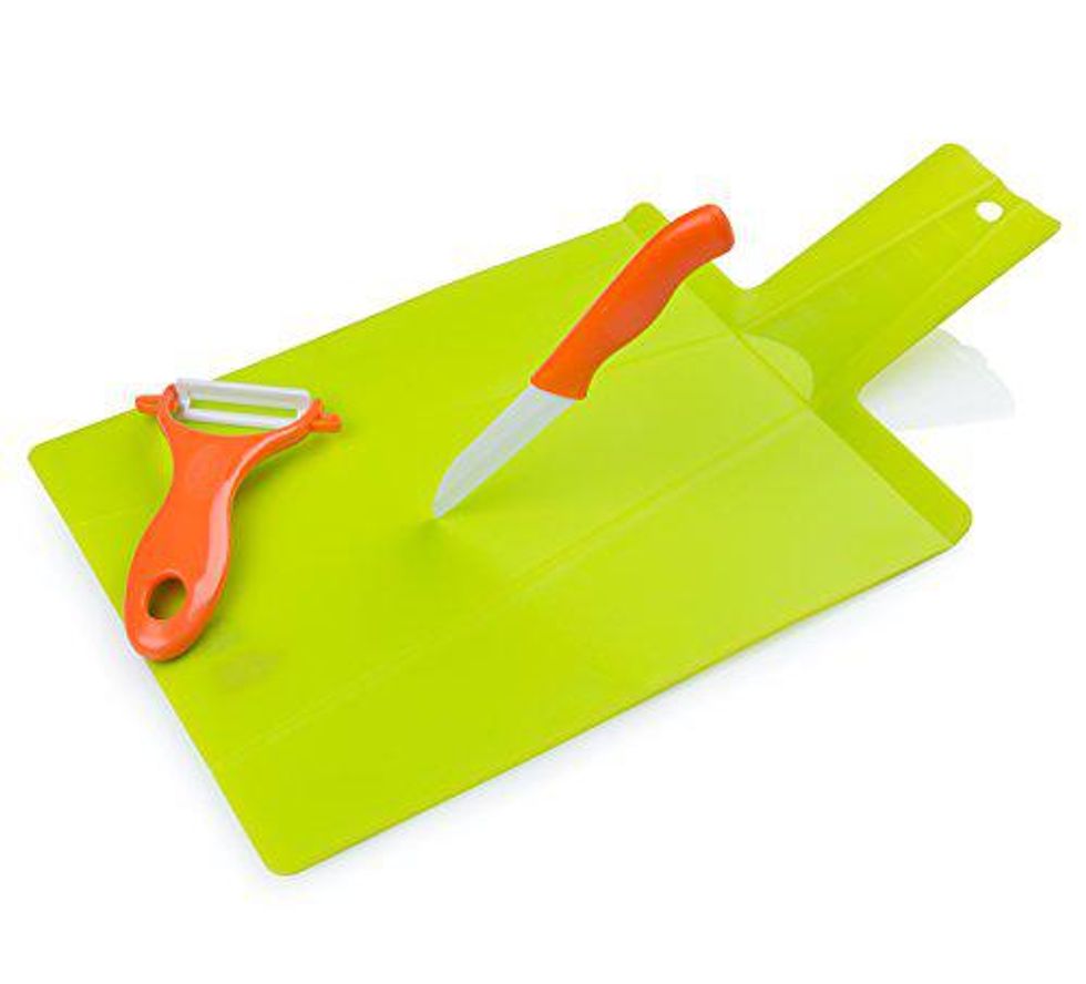I am always spilling things when I transport them from the cutting board into the pan and it is so annoying! This foldable cutting board completely solves this problem. The cutting board folds down the middle and makes it super easy to transfer whatever I am cutting up right into the pan with no mess!