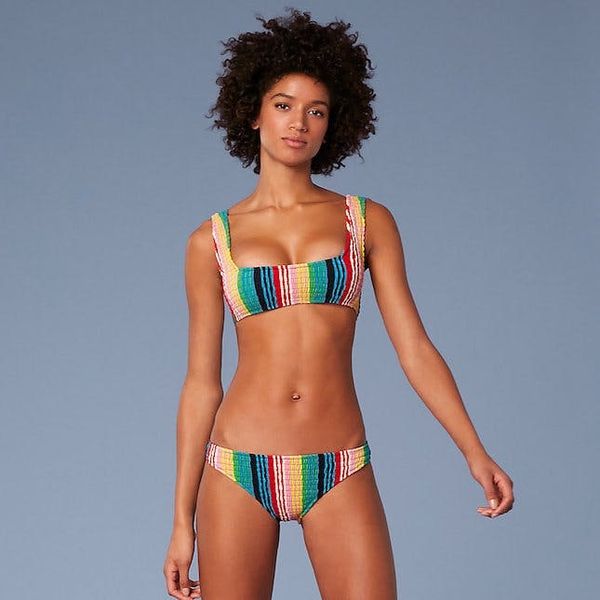 Floralkini Rainbow Striped Triangle Bikini Top ($22) and Rainbow Striped Bikini Bottom ($17)