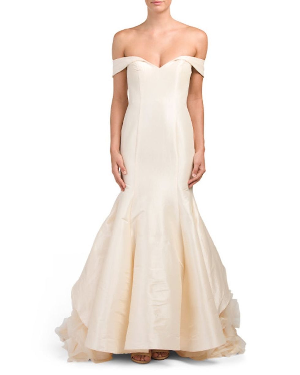 The Wedding Shop is full of fantastic buys for every type of bride, including this Macduggal Off the Shoulder Mikado Bridal Gown ($250). The selection averages at around 50 percent off retail, ranging from $30 to $300 for everything from designer ballgowns to lace jumpsuits in sizes 0 to 22. If you’re in the market for something stylish on the low, this may just be the mother ship.