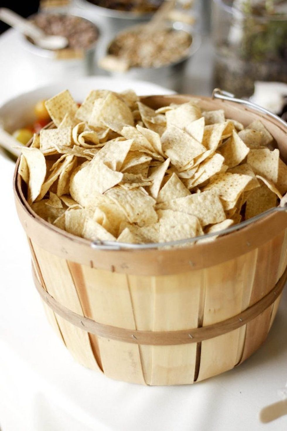 6. Tortilla Chips: Is there an elegant, stylish way to serve tortilla chips? Why yes, yes there it — this cute wooden basket is case in point. (via Style Me Pretty)