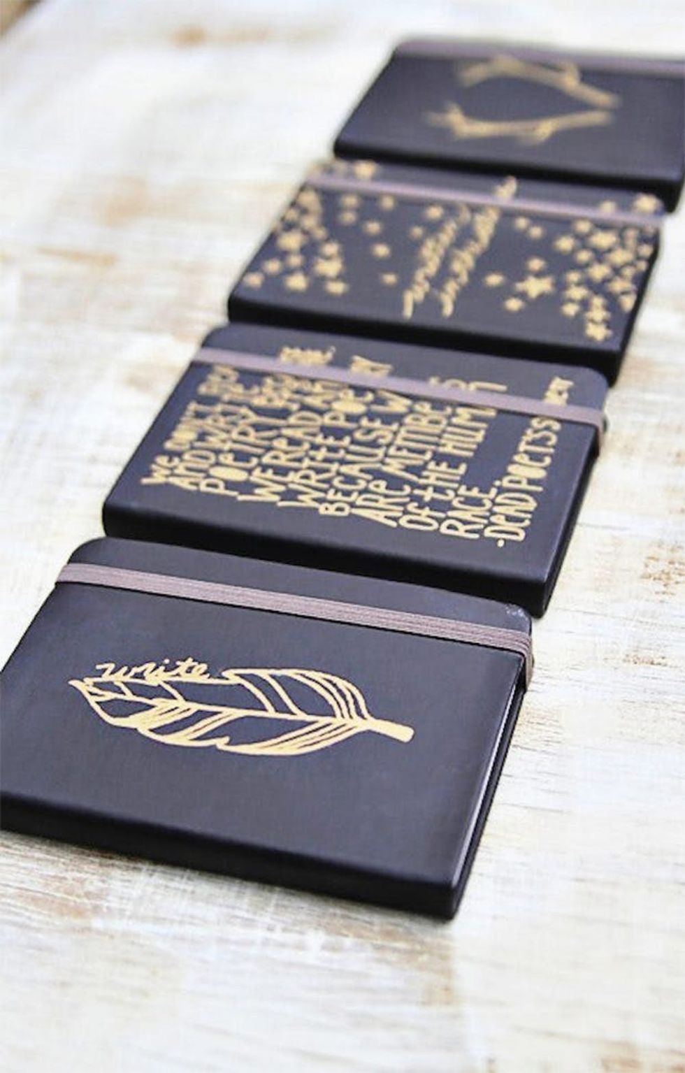 3. DIY Sharpie Journals: When it comes to stationery, it doesn’t get much more classic than a Moleskine or other plain black journal — but if you’re the kind of girl that likes to add a little extra edge to timeless staples, you’ll love this approach to crafting a custom notebook. Use white chalk transfer paper to sketch a design, or practice your hand-lettering skills on a favorite quote that will inspire you whenever you grab a pen. Fill in the lines with a metallic Sharpie, and voila! You’re looking at your new favorite journal. (via Lil Blue Boo)