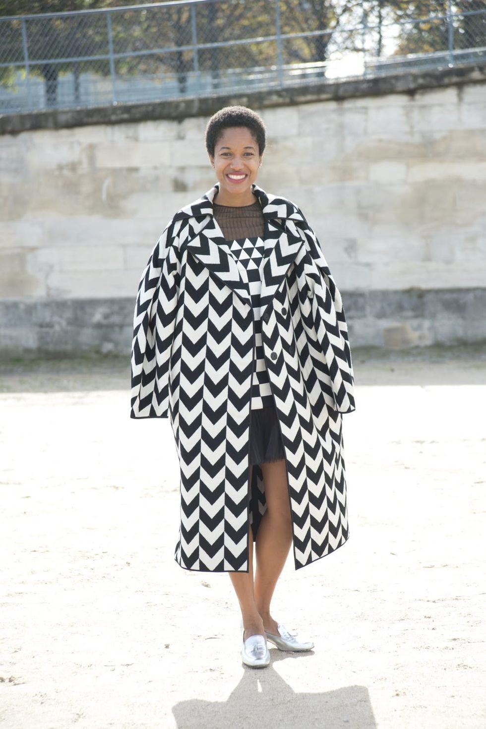 6. Leave your (style) mark. It’s all about an outfit-elevating topper — hypnotizing chevron FTW — that can be spotted at least a mile away. (Photo via Kirstin Sinclair/Getty)