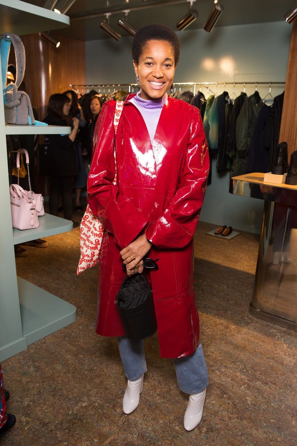 10. Let your patent topper do the talking. There’s something to be said about a slick patent coat that’s equal parts fierce and traffic-stopping. For double the slayage, Dries Van Noten white ankle booties aren’t up for debate. (Photo via Romain Mayoussier/Getty Images for Kenzo)