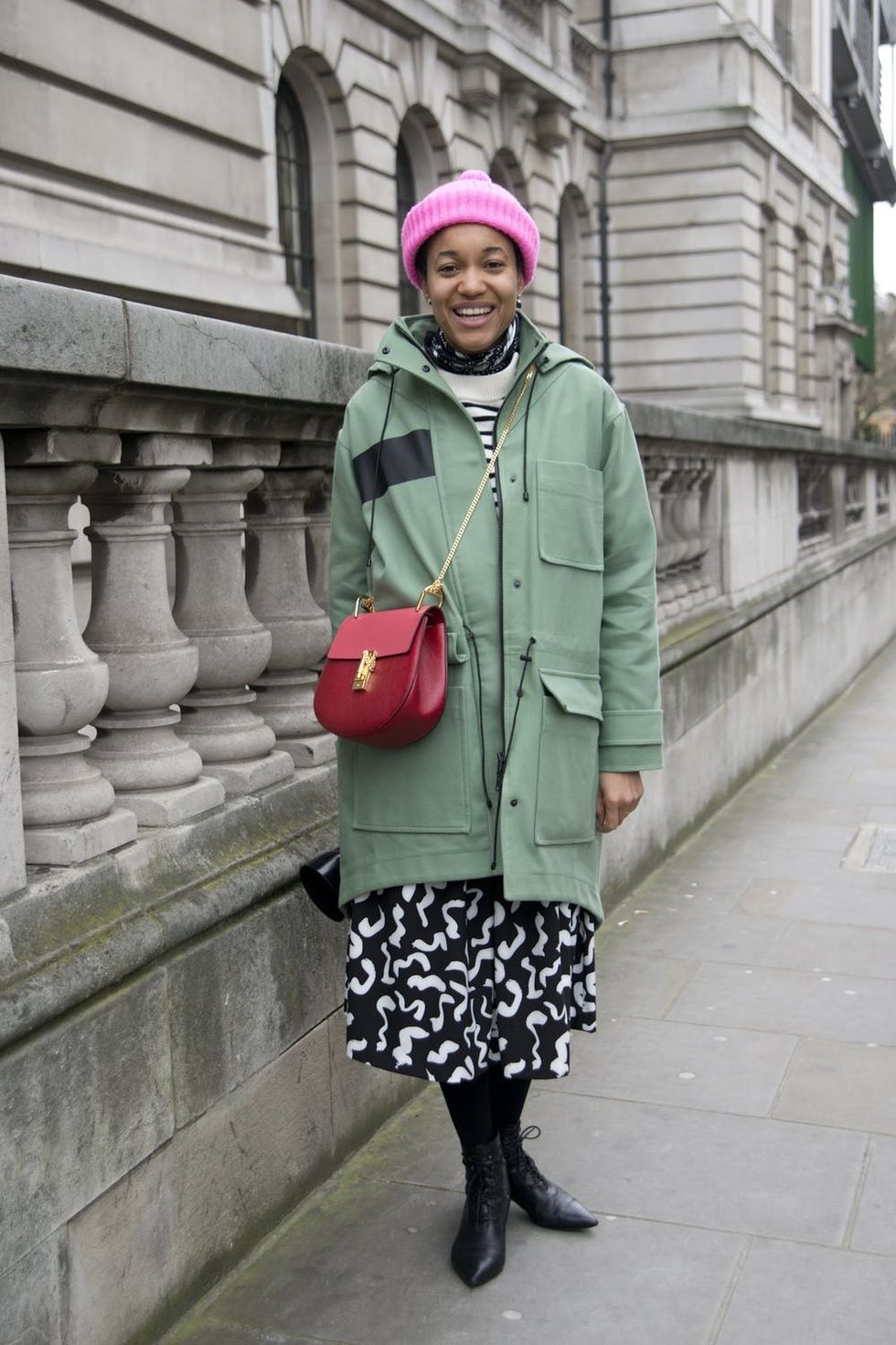 3. Fearless is Tamu’s middle name. As a rule of thumb, McPherson’s never more than an accessory or two away from being FROW-ready (note her “Protest” beanie, natch). Though don’t be mistaken; her leopard print coat and swishy metallic blue pleat skirt deserve major props too. (Photo via Astrid Stawiarz/Getty Images for Self-Portrait )