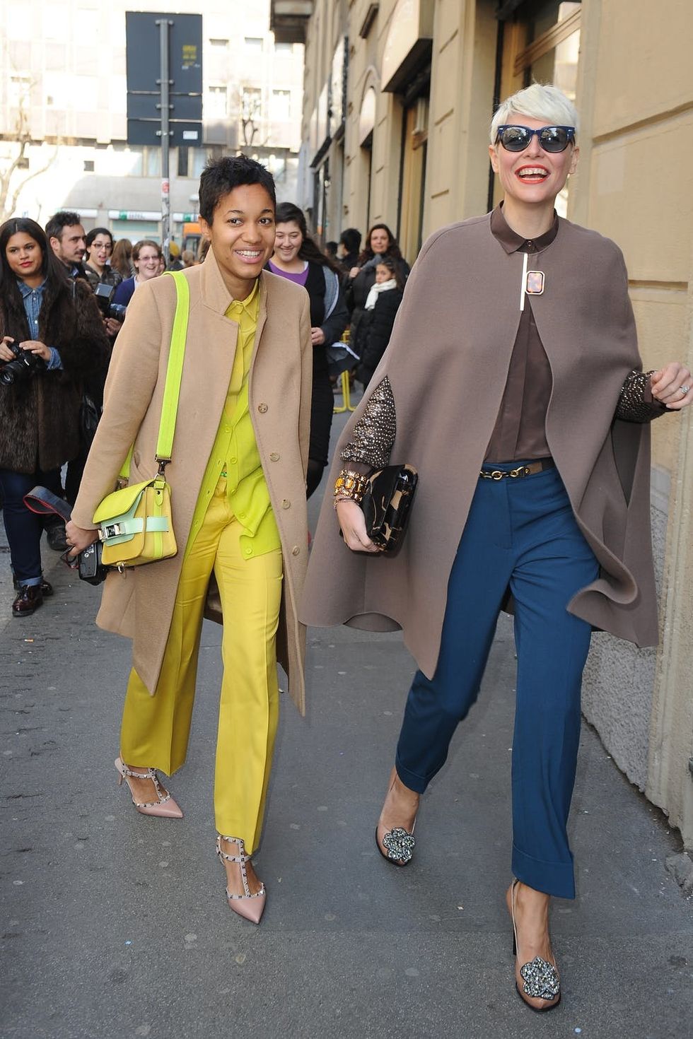 14. Go bold or go home. The Pretty Bird founder dabbles in monochromatic shades of lemon yellow and chartreuse for a ‘gram-worthy getup that’s not show off-y in the least. It’s her beige coat and nude Valentino studded heels that ground her look. (Photo via Jacopo Raule/Getty)