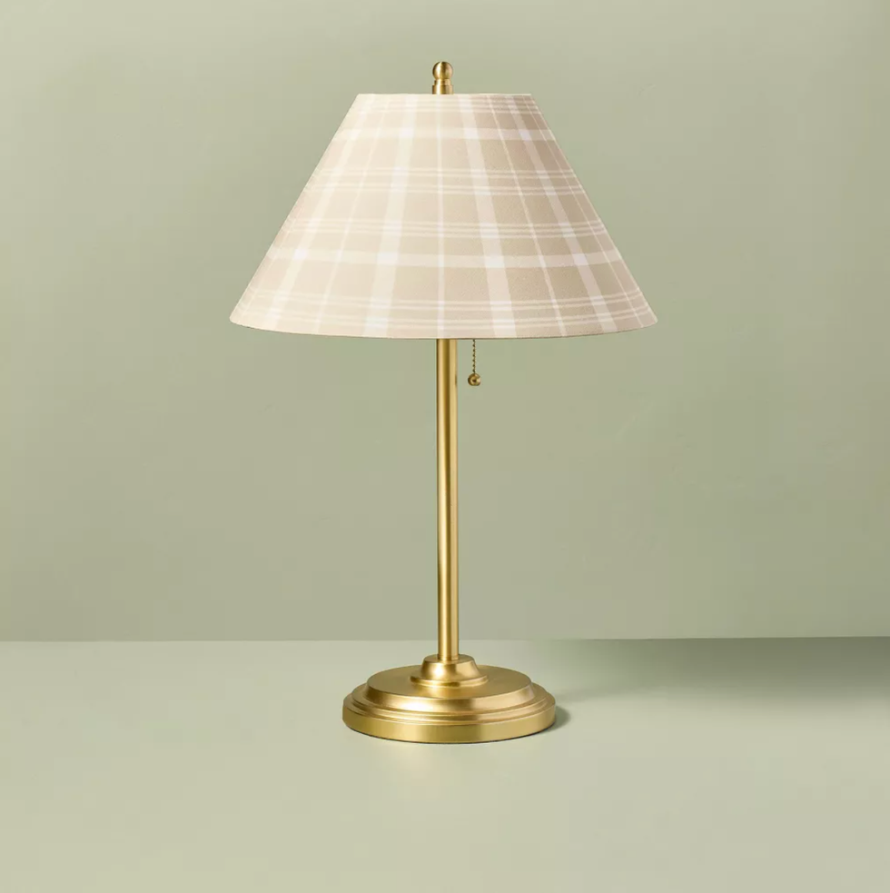 Hearth & Hand with Magnolia Brass Accent Table Lamp with Plaid Shade