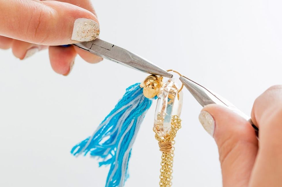 Last step! Make sure your tassel is dry, and then using the largest jump ring, attach your tassel to the decorative ring.