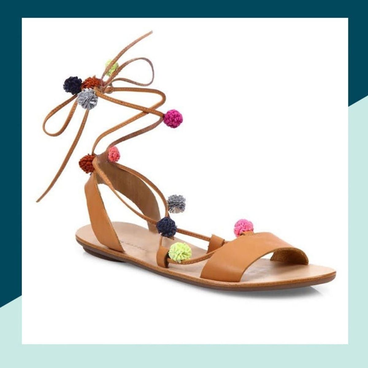 Warm weather calls for fun, flat sandals. These Loeffler Randall Saskia Pom-Pom Leather Lace-Up Sandals ($250) give new meaning to the term “happy feet.”