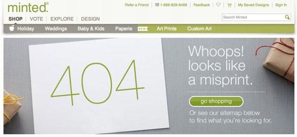 Sometimes, even the Internet doesn’t have everything you’re looking for. When you get stuck, there’s one thing that can ail that feeling of being lost online: a hilarious, beautiful, or cleverly copywritten 404 page. Here are 30 of our faves from sites we visit on a weekly basis.