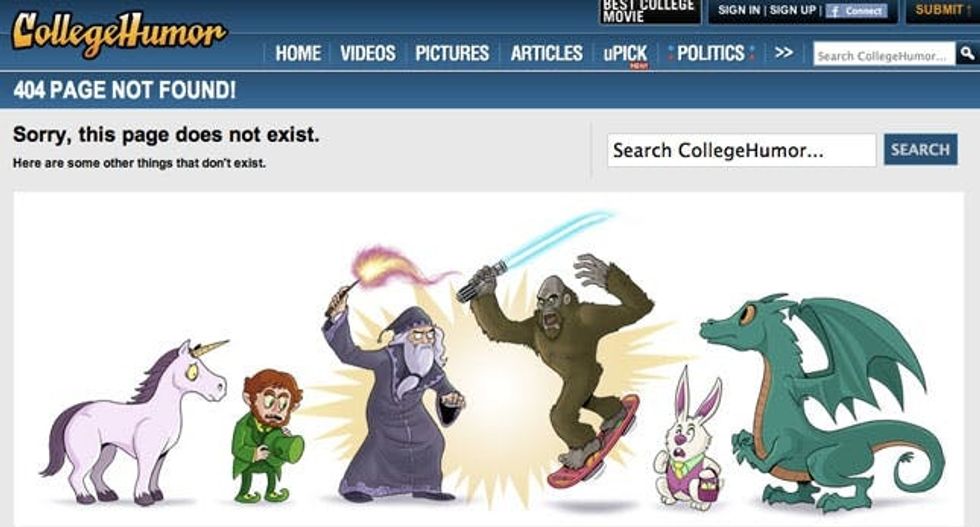 21. College Humor: This page doesn’t exist, and neither do wizards, unicorns, leprechauns and dragons. Wait, what?