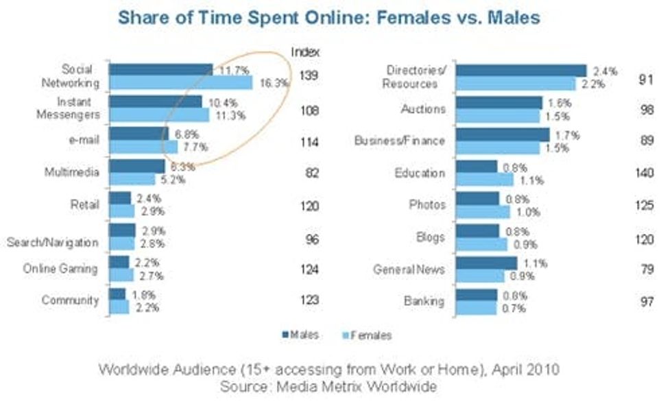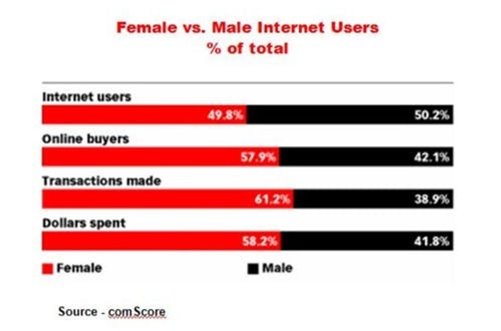 Maybe I'm biased, but I consider the topic of 'women on the web' as one of the more interesting trends in technology right now. Women are using the web (and technology in general) in abundance these days! We're killing it, gals! For instance, even though the total amount of Internet users is split fairly equally between genders, women are spending much more time online and are purchasing far more online than our male counterparts. What does that mean? Advertisers and tech companies love us! (This could be a good thing or a bad thing, depending on how you spin it.)