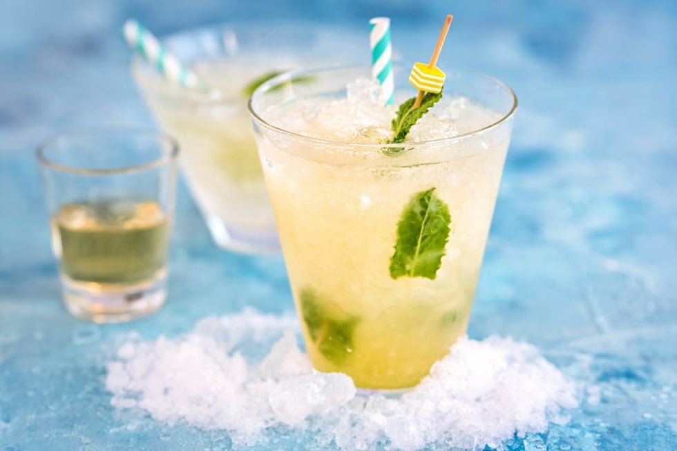 - Thread a mint leaf through a cocktail stick to garnish, and add a straw. Happy sipping!