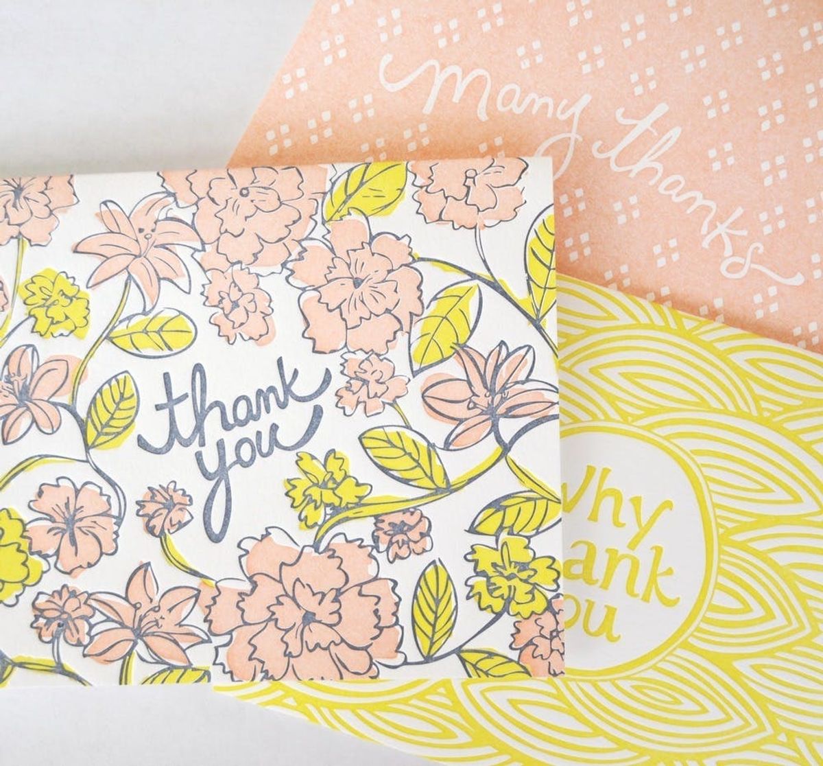 25. Floral Thank You Card Set ($22): Why settle for one design when you can get three? These pink and yellow charmers will fulfill all your appreciation needs.