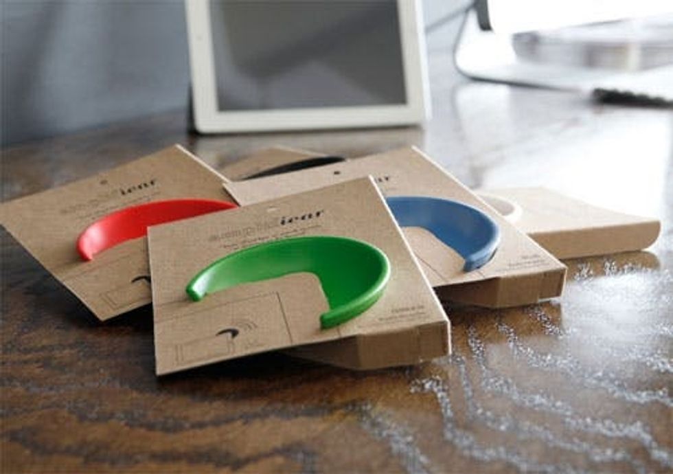 Now, how does it work? The coolest thing about the Amplifiear is that it's a tech gadget in the most low tech analog way possible. It simply clips onto the corner of the iPad and reflects and amplifies the sound coming from the back speaker. No more distortion when you're trying to hear something, or always turning the volume all the way up. For a $20 Kickstarter pledge, choose whichever color you like and prepare to revel in a serious sound upgrade.