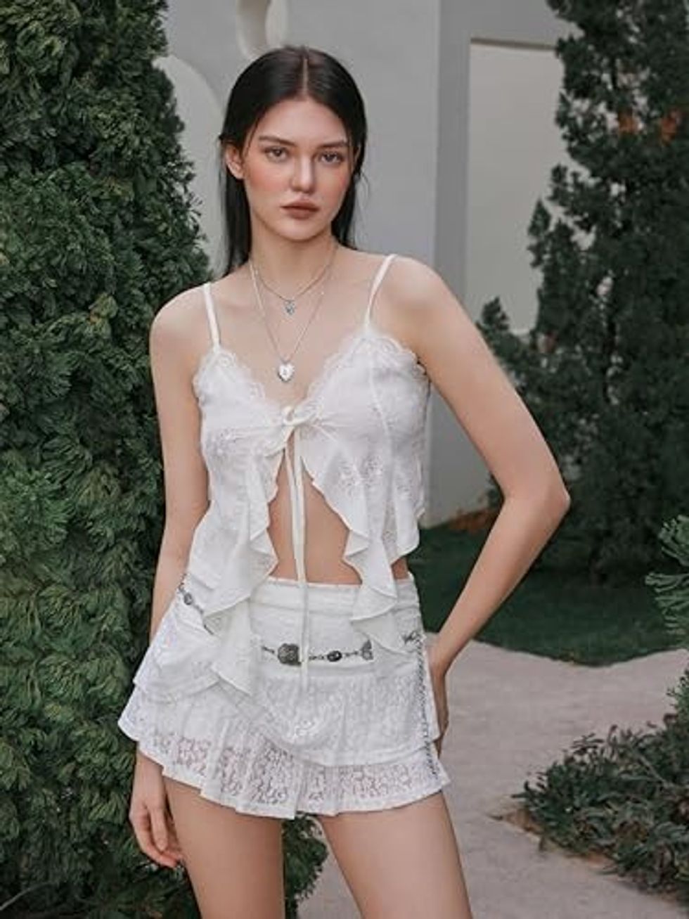 See it on AmazonThis Y2K Lace Crop Top Is Giving “Night Out That Ends in a Rooftop Confession”