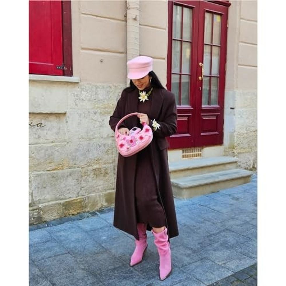 The pink rosette appliqué mini dress is pure TikTok femininity in motion. With a corset-style fit and dramatic floral details, it combines romantic drama with a modern silhouette. Picture yourself twirling in slow-motion under string lights — it’s that kind of vibe.
