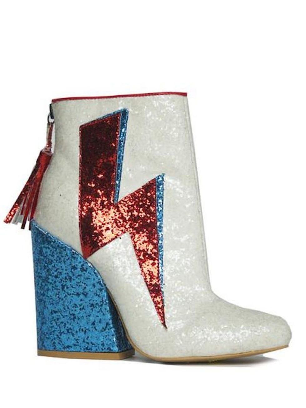 8. YRU: Psychedelic footwear? Right this way. Inspired by freedom and individuality, YRU’s selection of rainbow heeled steppers, holographic sneakers, and Gaga-esque platforms will have you raging hard in no time. These Ziggy Stardust-inspired stompers aren’t even up for debate — team ’em with a leather moto jacket and denim cutoffs for a Lollapalooza-bound getup that slays. Brit + Co Pick: YRU Ziggy Boots ($130)