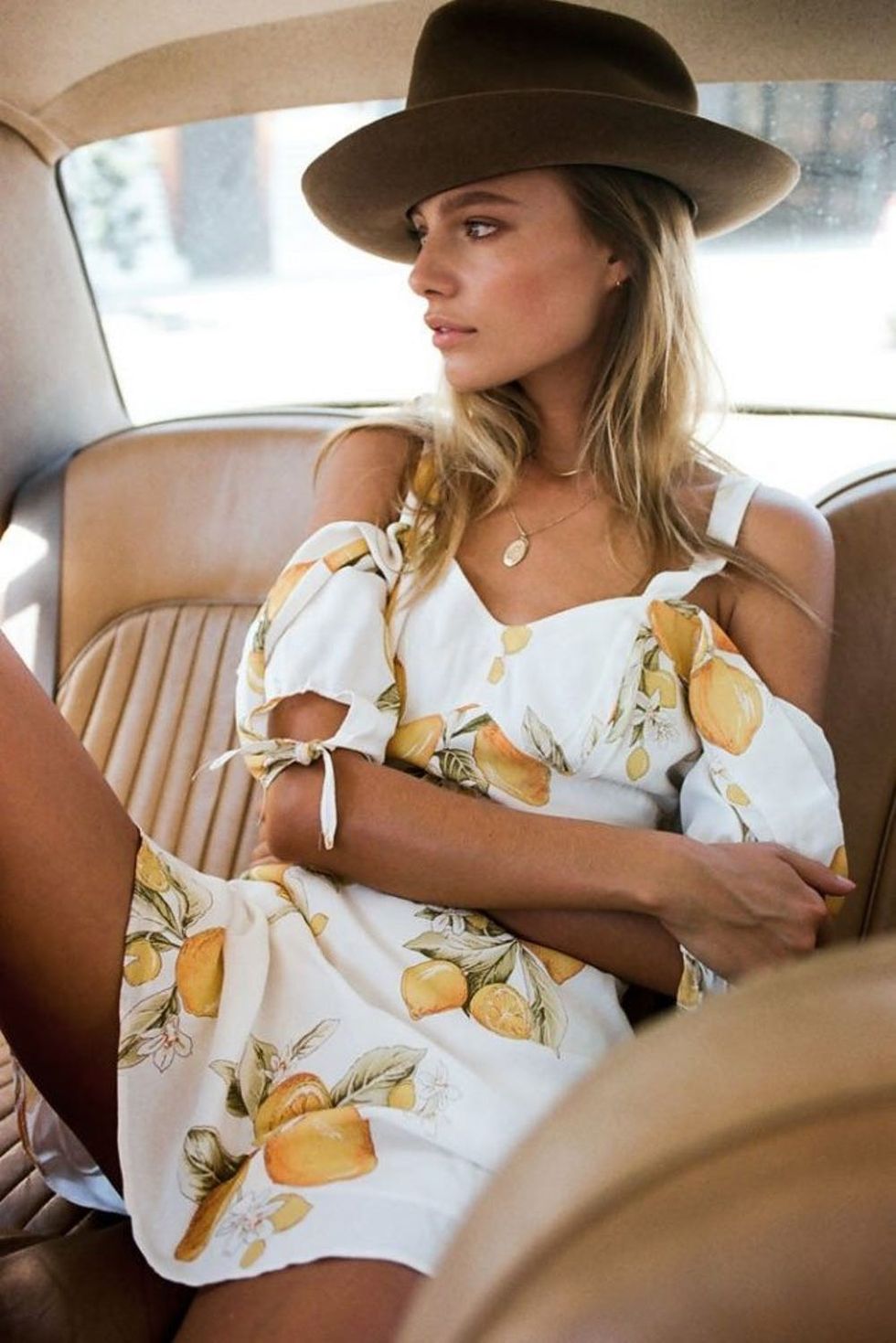 14. For Love & Lemons: Ready or not, Coachella, here we come! For Love & Lemons will bring forth your inner goddess. The LA-based brand is practically known for their ultra-femme pieces characterized by romantic lace, frilly details, and plunging necklines that leave just the right amount to the imagination. We’d be lying if we said this cold-shoulder lemon print dress wasn’t at the top of our festival season wish list. Cool fedora unfortunately not included. Brit + Co Pick: For Love & Lemons Limonada Mini Dress ($198)