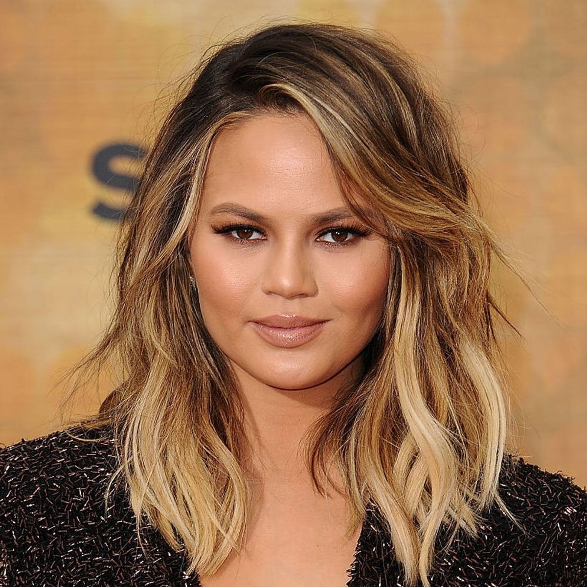 2. Round: A tousled shag is a stunning style for round-faced celebs like Chrissy Teigen, Selena Gomez, and Jennifer Lawrence. A piecey cut with more angles counterbalances roundness and lends structure. Ask your stylist to cut the angles to your cheekbones for the illusion of more chiseled features. (Photo via Jason LaVeris/Getty)