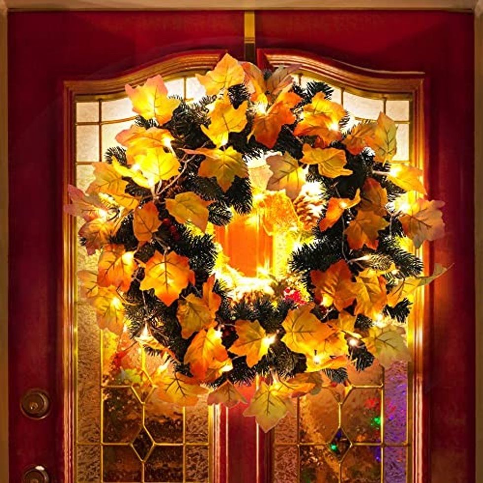 Why put up a garland of fall leaves when you could put up a garland of string lights AND fall leaves at the same time? One of those classic pieces of Thanksgiving decor, this garland will look beautiful curled around the plates of food on your dinner table or hung across your mantle or over your windows.