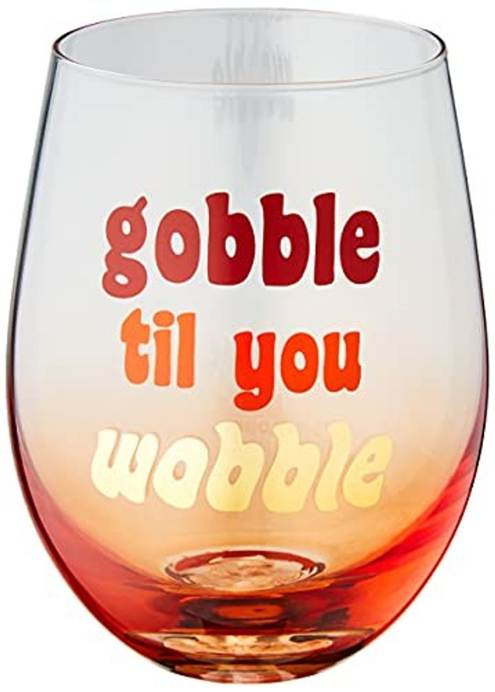 Thanksgiving isn't all mashed potatoes and gratitude; it's also about laughing with your friends and family, spending time enjoying their presence. And if you're looking to kickstart the laughter, grab this hilarious "Gobble til you wobble" wine glass. It's going to make everyone who sees it either chuckle or groan at the dad-joke of it all.