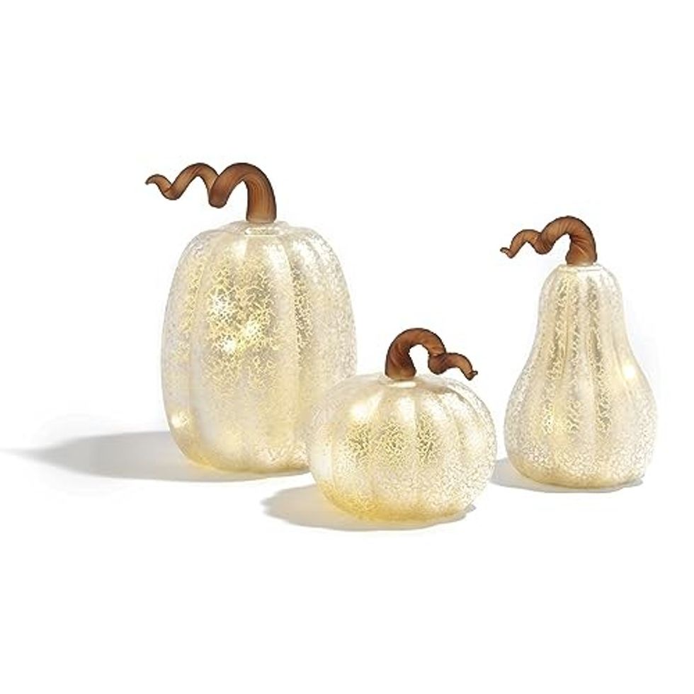 You can't go wrong with pumpkins! And these mercury glass-style pumpkin lights are some of the best. They're much safer than that famous glass but still give you the elegant, crackling effect that casts lovely light across walls and over tables, illuminating the faces of all of your lovely, gathered guests.