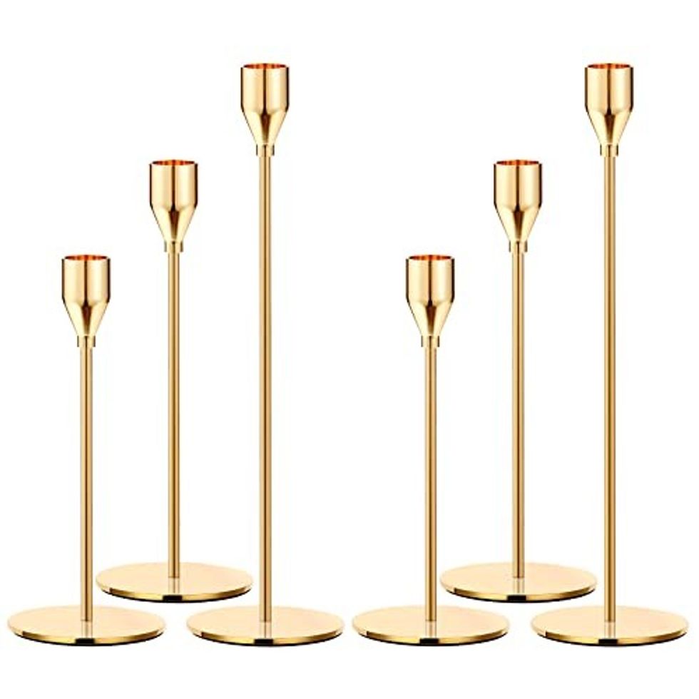 The best thing about these stunning gold candlestick holders is that they take center stage in seconds. You don't have to go over-the-top with your table decor when you've got these and some beautiful, fall-colored candles sticking out of the top. Whether they're lit or not, they're going to capture everyone's attention.
