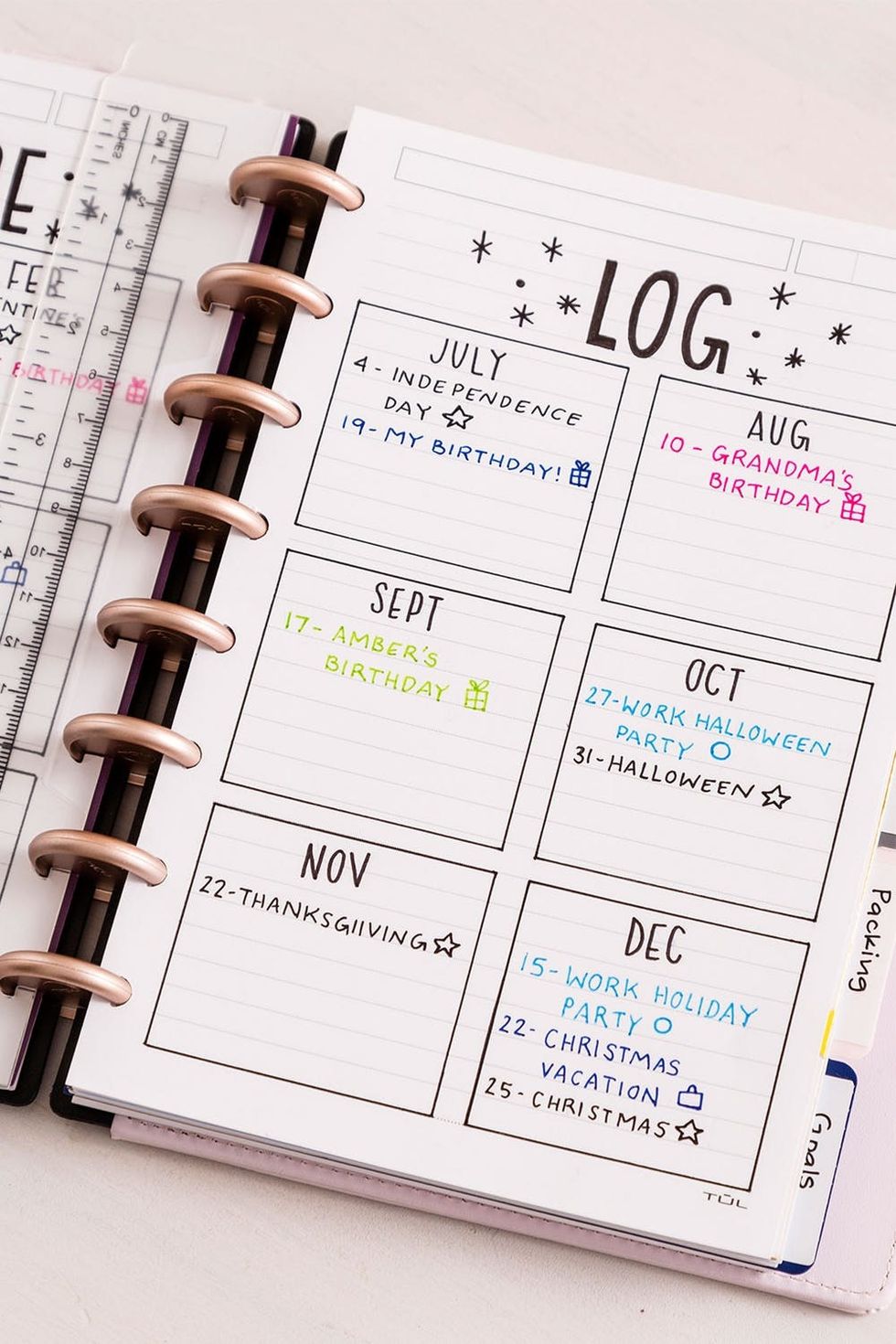3. Make a future log. Your future is bright and meant to be embraced! That’s why you’ll need a place to add the dates, appointments, and events you’re looking forward to in the upcoming months. A future log is all about planning for tomorrow and should serve as the ultimate snapshot for your year in one place.