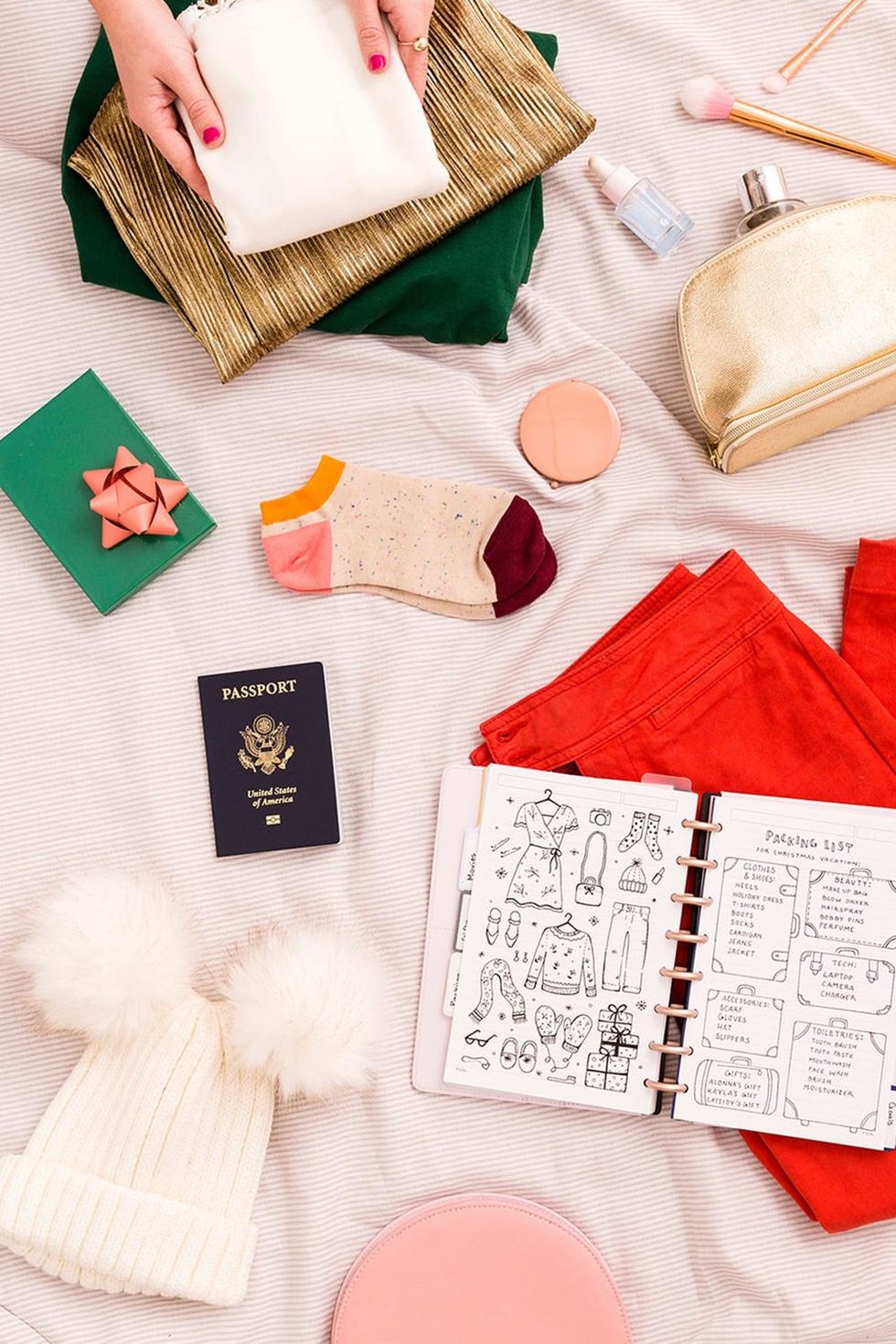 5. Start packing early for your holiday vacay to minimize stress. Save yourself the panic of preparing for a trip at the last minute and begin making your packing list early. As you think of items you need to bring on your vacation, such as your BFF’s present, a festive skirt, and mittens, add them to your list! When the time comes, throwing everything in your suitcase will be a breeze.