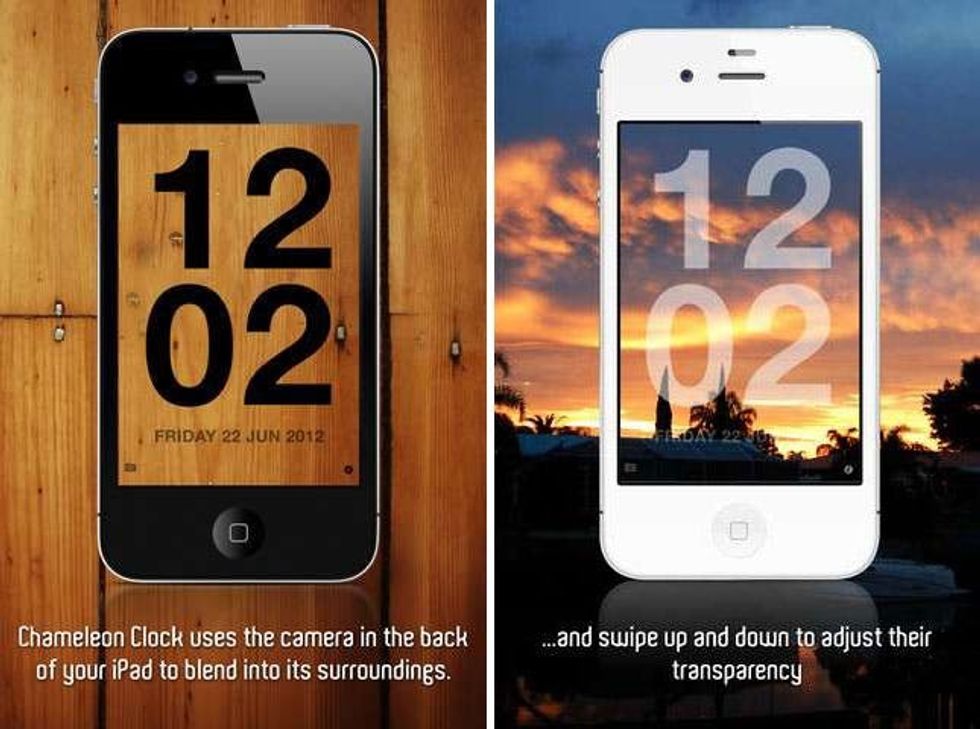 An app by Netwalk, Chameleon Clock ($0.99) turns the background of your iPhone or iPad into a dynamic see-through screen saver.