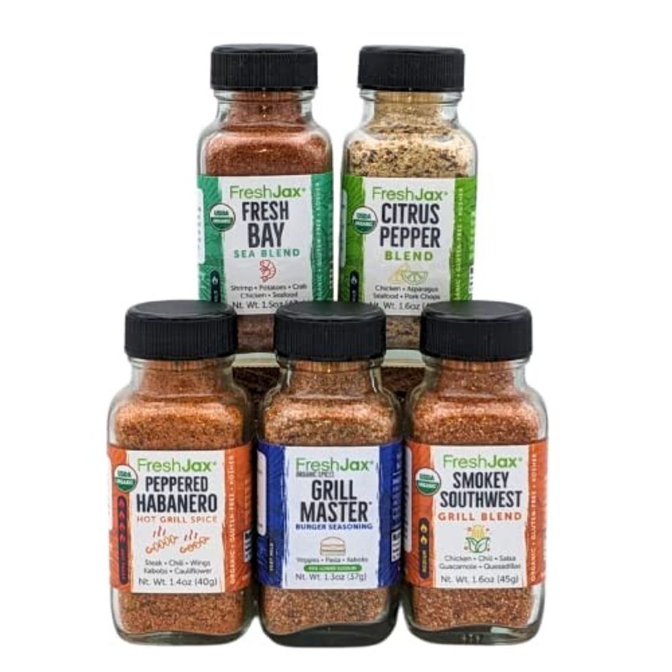 Keep your meats and veggies flavorful with this set of grilling spices. Pick from five different flavors including peppered habanero hot grill spice, citrus pepper blend, grill master burger seasoning, fresh bay sea blend and smoky southwest grill blend.