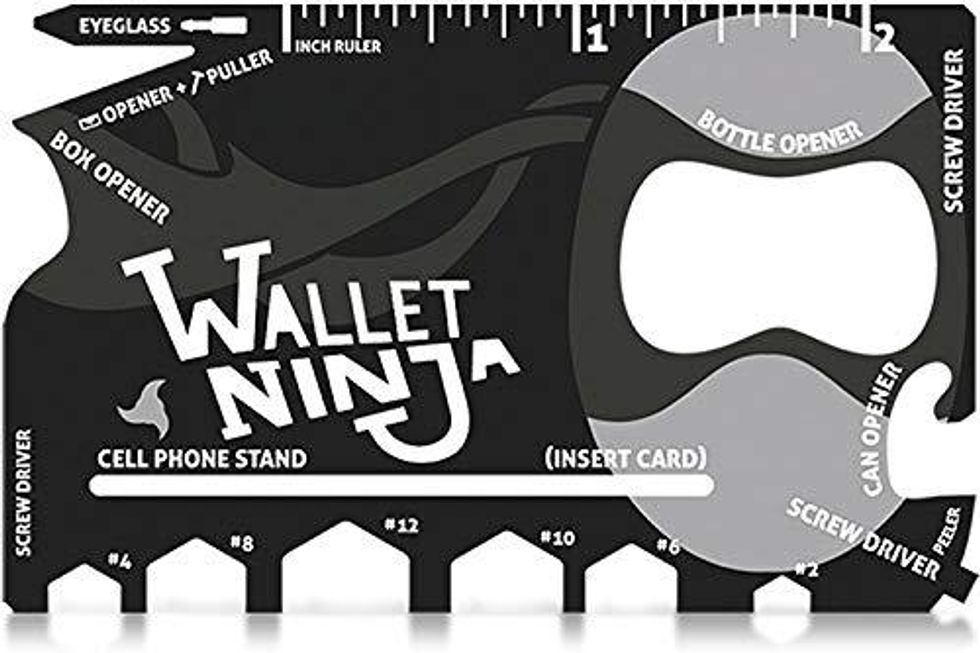 Do you want to have a screwdriver, a bottle opener, a box opener, a can opener, a cellphone stand, an eyeglass screwdriver, a beer opener, a fruit peeler, a hex wrench, and a nail puller easily available in your pocket? This Wallet Ninja has all that and fits in your wallet.