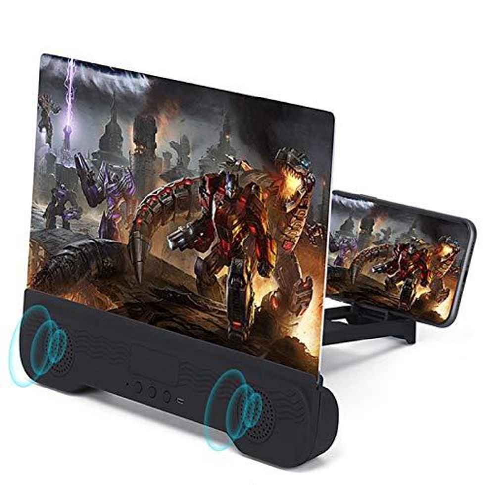 This phone screen magnifier is great for folks who want to watch shows but don't have a tv: it turns your phone into a 14 inch screen, complete with bluetooth speakers.