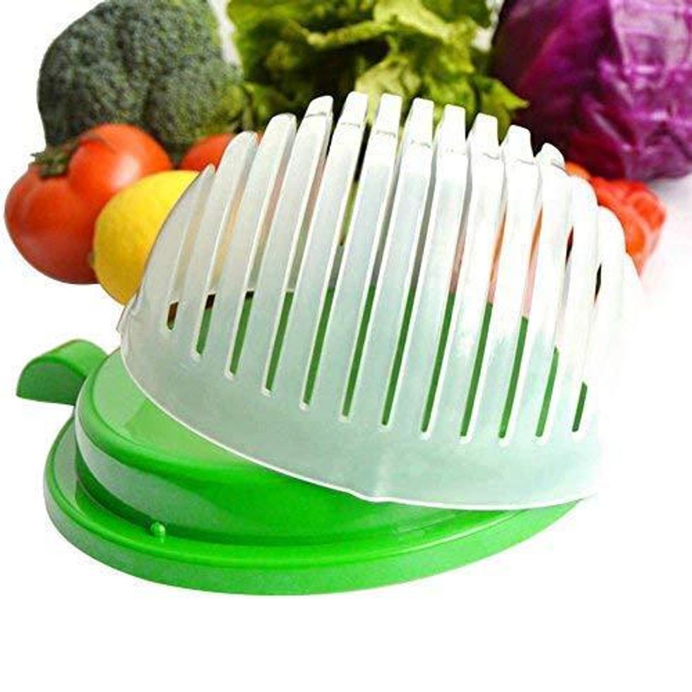 Sometimes I wonder if it's worth it to chop my lettuce for salads, but when I discovered this quick chop I knew I would never look back. Just put your lettuce in the bowl, slice through the slits, and you have a ready made salad.