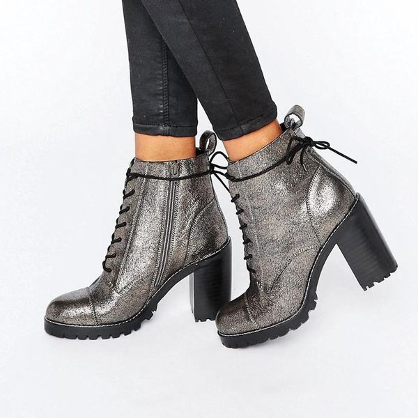 2. Office Ammo Pewter Leather Chunky Lace Up Heeled Ankle Boots ($12): Conquer slippery sidewalks on your Monday morning grind with quicksilver boots that strike just the right balance of smart and chic. Team ’em with tailored ankle trousers, an oversized sweater and statement earrings for the office, or dress ’em up after-hours with a flirty floral midi dress and faux fur coat.