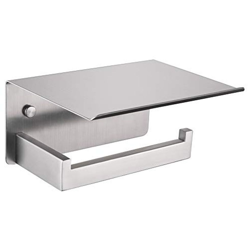 Let's be real, we are all bringing our phones to the bathroom now, so it's best to create a space for them. So I suggest adding this toilet paper holder with a phone shelf to the bathroom.