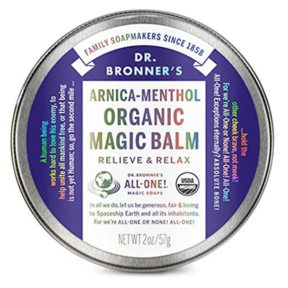 Aches and pains? Dry, irritated skin? Sore muscles? This organic Magic Balm from Dr. Bronner's does it all from moisturizing to relieving joint and muscle pain! It combines organic beeswax with organic jojoba, avocado, and hemp oil to soothe skin, and a potent blend of herbs like arnica, camphor, menthol, and peppermint to ease pain on contact.